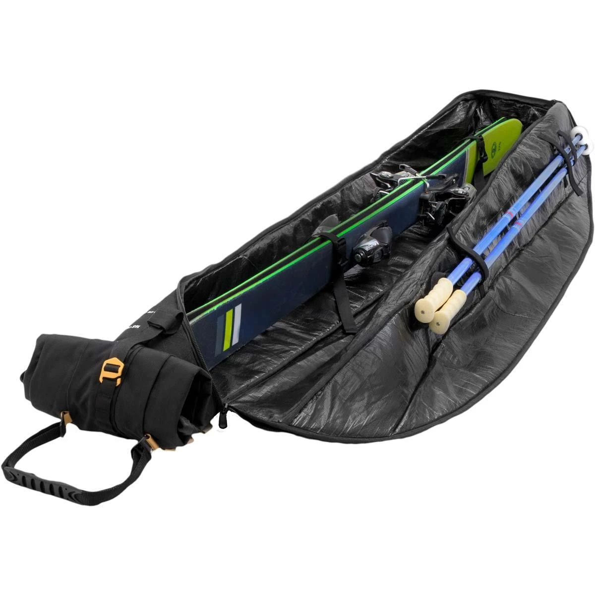 - Pole Grabber™: Easy-use internal strap system secures poles separately from skis.