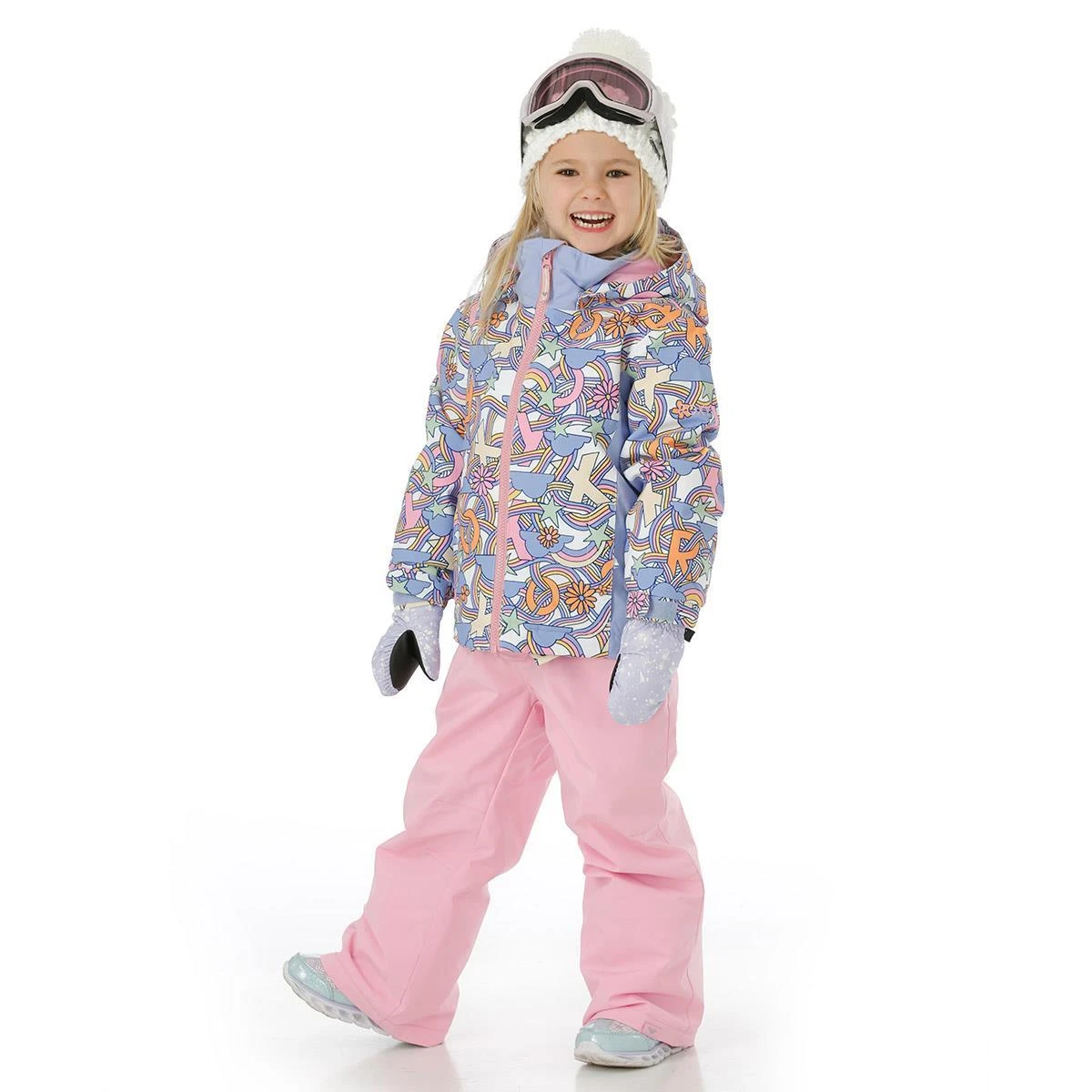 The Roxy Toddler Girls Snowy Tale Jacket is the perfect jacket for your skier or snowboarder. It is waterproof and insulated with 200 grams in the body, plenty to keep the cold out! It also has technical features such as a pass pocket on the sleeve, a removeable hood, and a powder skirt to keep the snow out.